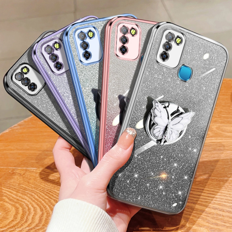 Funda TPU para Infinix Smart 5 con Soporte de Mariposa y Brillo Degradado (Negro)