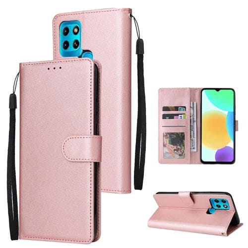 Funda para Infinix Smart 6 de Cuero Multifuncional con 3 Ranuras para Tarjetas (Oro Rosa)