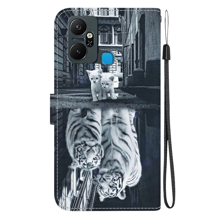 Funda de Cuero para Infinix Smart 6 Plus con Dibujo Coloreado y Textura de Cristal (Reflejo de Tigre Gato)