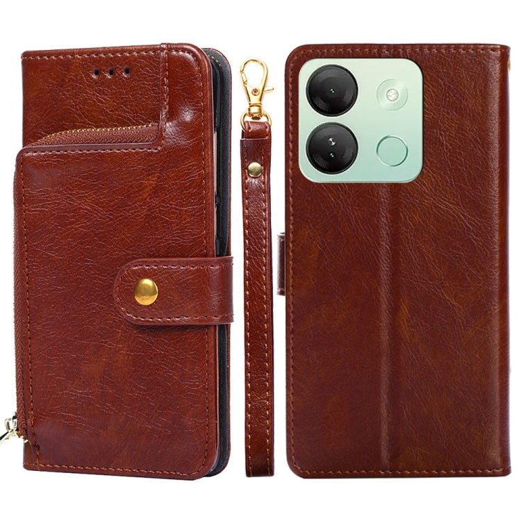 Funda de Cuero con Cremallera para Infinix Smart 7 HD (Marrón)