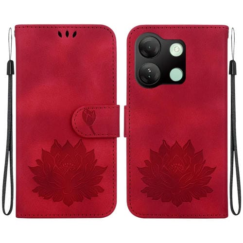 Funda de Cuero para Infinix Smart 7 HD con Relieve de Loto (Rojo)