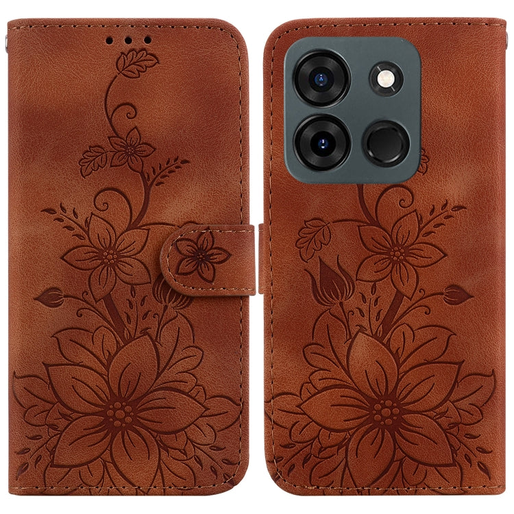 Funda de Cuero con Relieve Lily para Infinix Smart 7 India y Smart 7 Plus (Marrón)