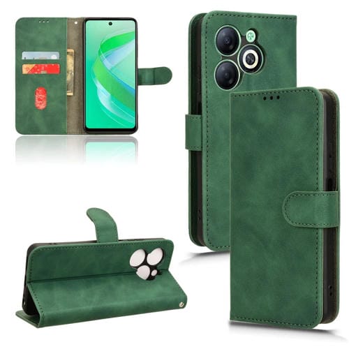 Funda de Cuero para Infinix Smart 8 con Tapa Magnética Skin Feel (Verde)