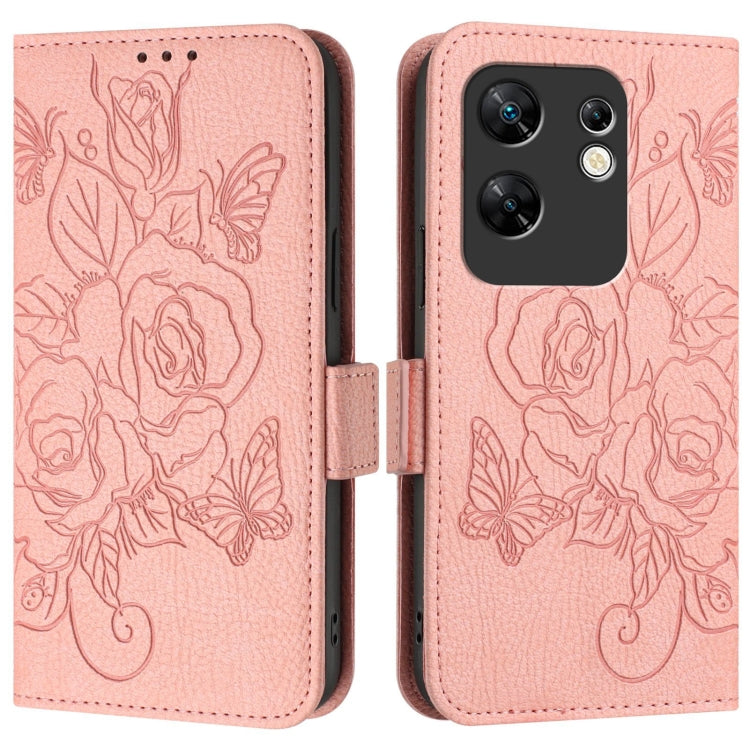 Estuche de Cuero Antirrobo con RFID para Infinix Zero 30 4G en Relieve (Rosa)