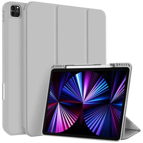 Funda para Tableta iPad Pro 11 2022/2021/2020 TPU Cuero Inteligente 3 Pliegues Ranura Bolígrafo (Gris)