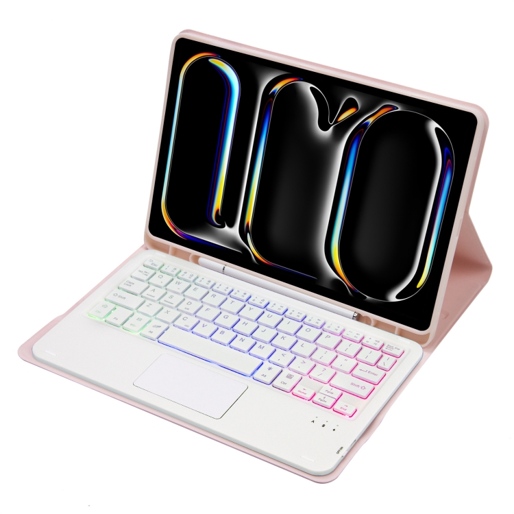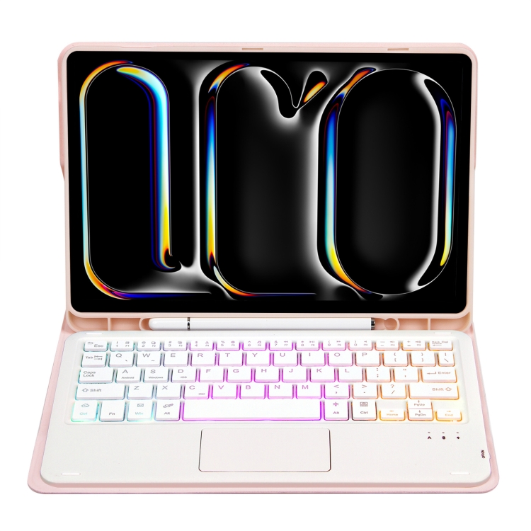 Funda para Tableta iPad Pro 11 2024 A13B-As Cuero Piel de Cordero Teclado Bluetooth Ranura Bolígrafo (Rosa)