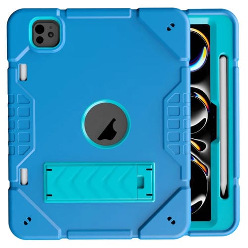 Funda híbrida de silicona para iPad Pro 11 (2024) con soporte de armadura (Azul)
