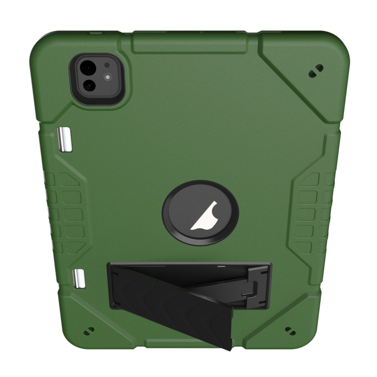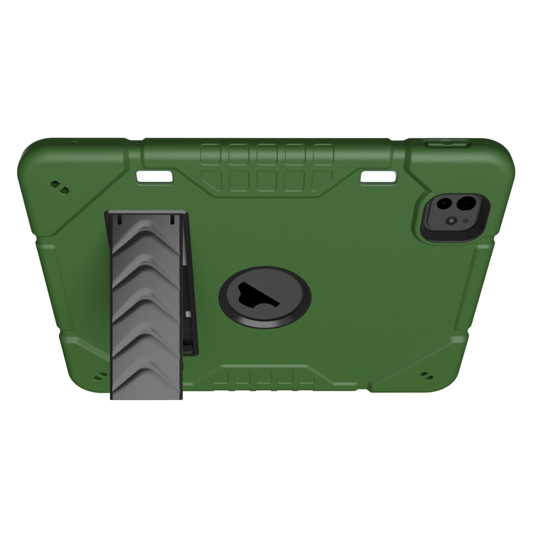 Funda híbrida de silicona para iPad Pro 11 (2024) con soporte de armadura (Verde Militar y Negro)