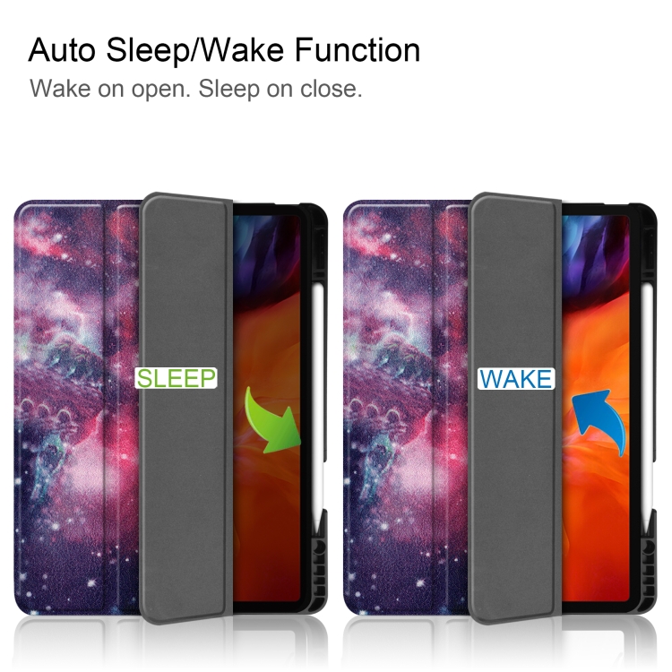 Funda para Tableta iPad Pro 12.9 2022/2021 Dibujo a Color Flip Horizontal TPU + PU Cuero con Tres Soportes Plegables y Ranura para Bolígrafo (Vía Láctea)