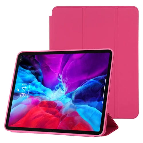 Funda de Tableta Cuero Inteligente para iPad Pro 12.9 (2020/2021) Horizontal Flip 3 Veces con Suspensión y Despertador (Rosa Roja)