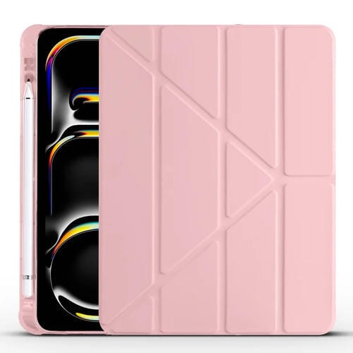 Funda para Tableta iPad Pro 13 2024 Cuero TPU Plegable Múltiple con Ranura para Bolígrafo (Rosa)