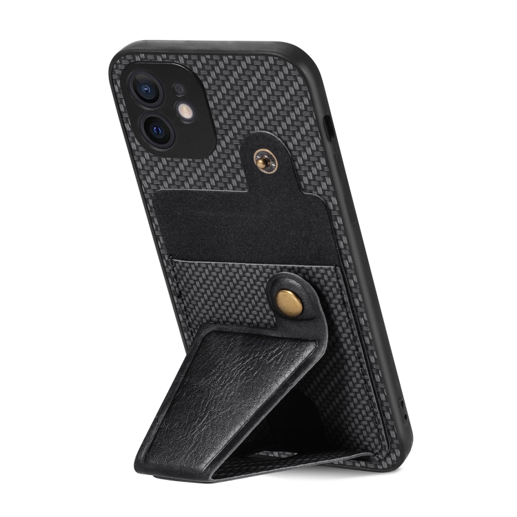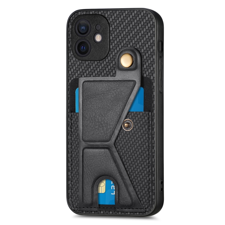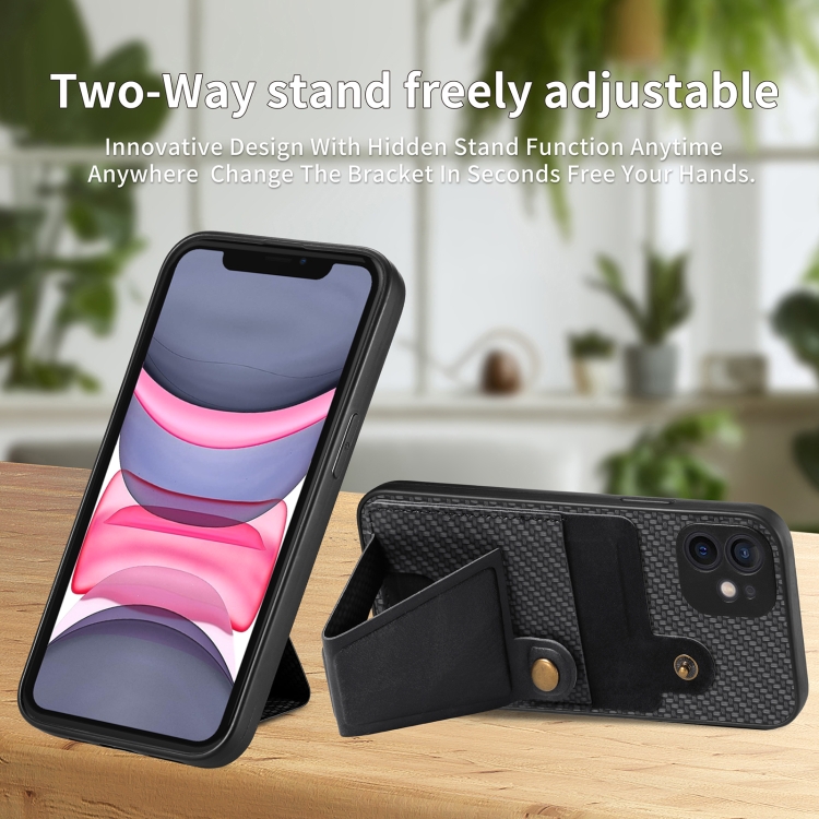 Funda Cartera para iPhone 11 Fibra de Carbono Flip Card con Soporte en Forma de K (Negro)