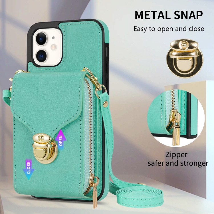 Funda para iPhone 11 con Cremallera Hardware Card Wallet Phone Case (Verde Menta)
