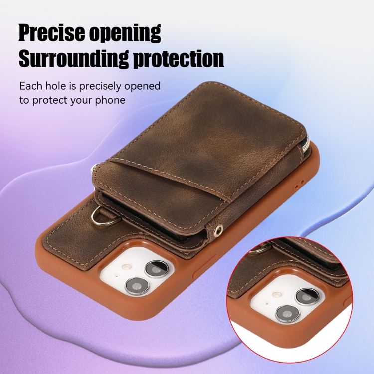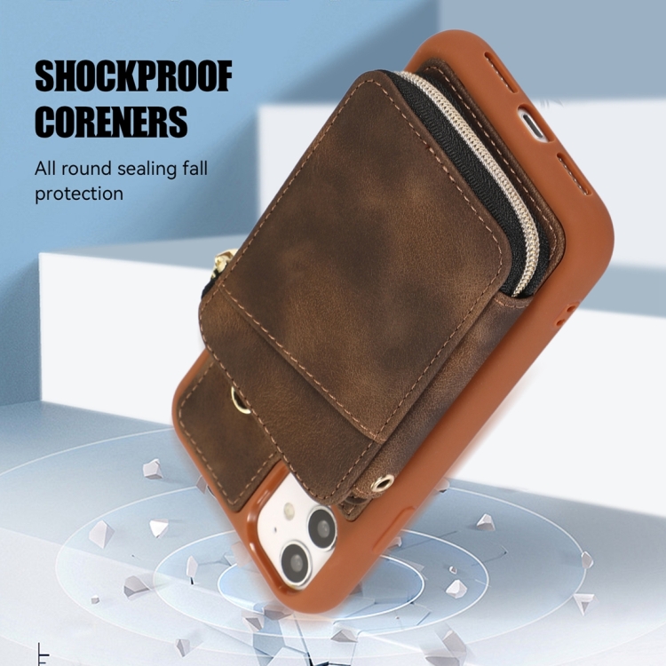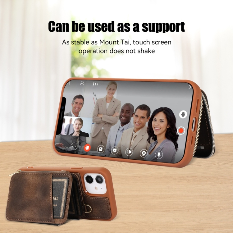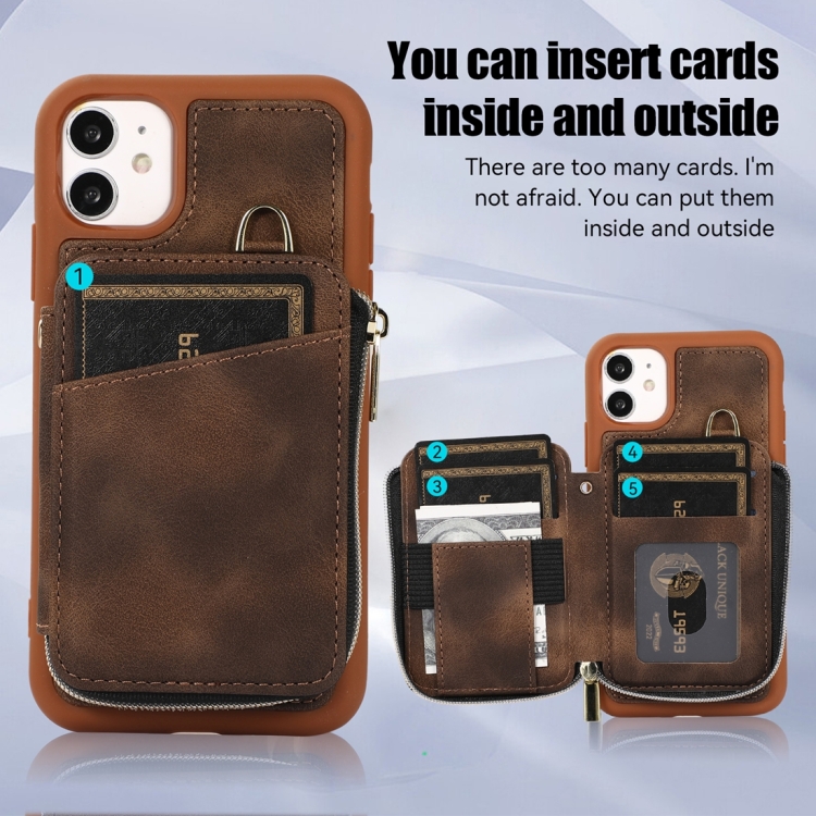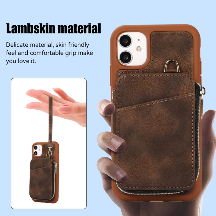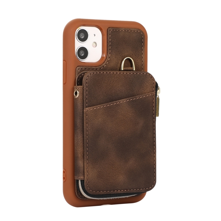 Funda para iPhone 11 Bolsa de Tarjeta Cremallera Contraportada Caja del Teléfono (Marrón)
