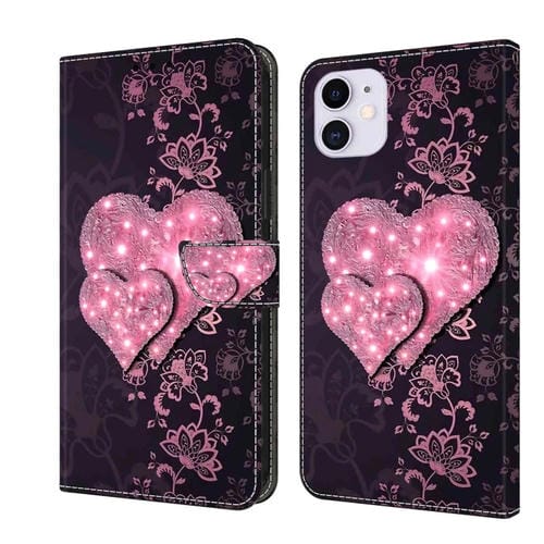 Funda protectora para iPhone 11 Lace Love Crystal 3D de cuero a prueba de golpes