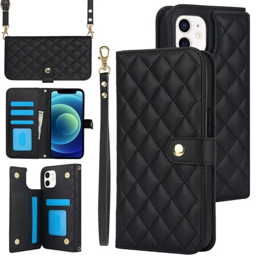 Funda Cruzada de Cuero Rómbico para iPhone 11 Multifunción (Negro)