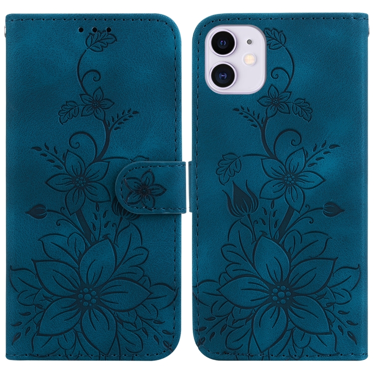 Funda de Cuero iPhone 11 con Relieve Lily (Azul Oscuro)