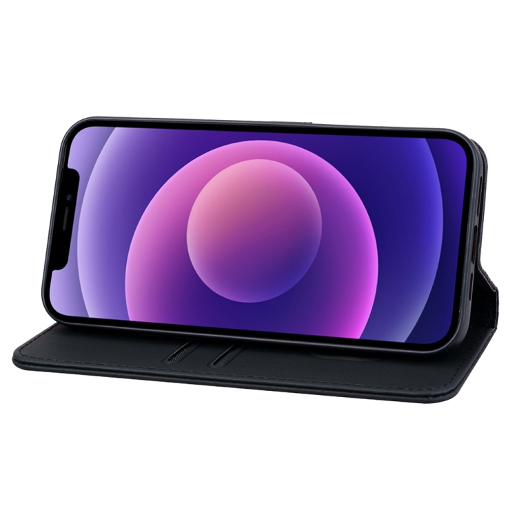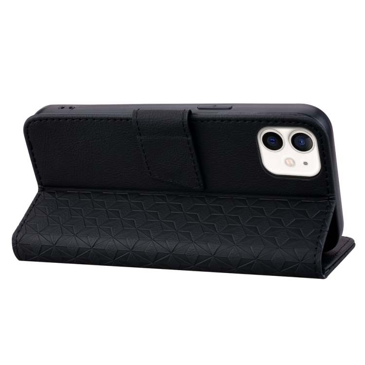 Funda de Cuero para iPhone 11 con Hebilla de Diamante y Cordón (Negro)