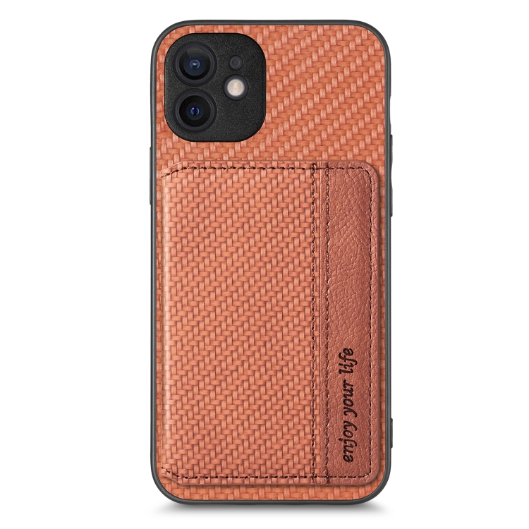 Funda de Teléfono para iPhone 11 con Bolsa de Tarjeta Magnética de Fibra de Carbono (Marrón)