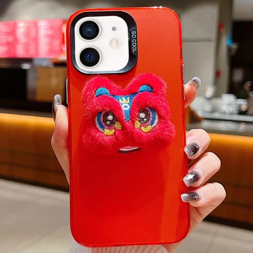 Funda para Teléfono iPhone 11 con Muñeco de Peluche y Danza del León de Año Nuevo (León Rojo con Espalda Roja)