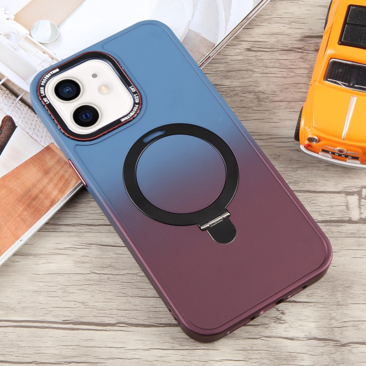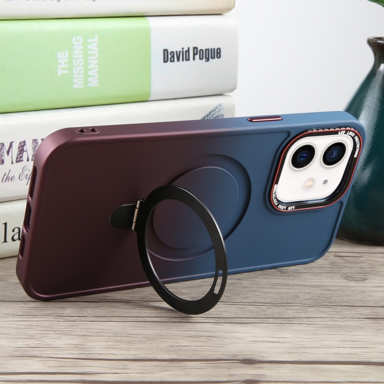 Funda para Teléfono iPhone 11 con Soporte Magsafe y Silicona Líquida Gradiente (Rojo Vino Azul)