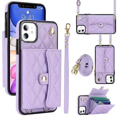 Funda para Teléfono iPhone 11 Cuero con Billetera Horizontal Rombal Cruzada (Púrpura)