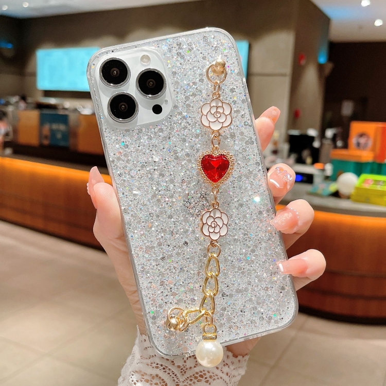 Funda para Teléfono TPU Epoxi iPhone 11 con Cadena de Gemas de Amor y Lentejuelas Estrelladas (Plateado)