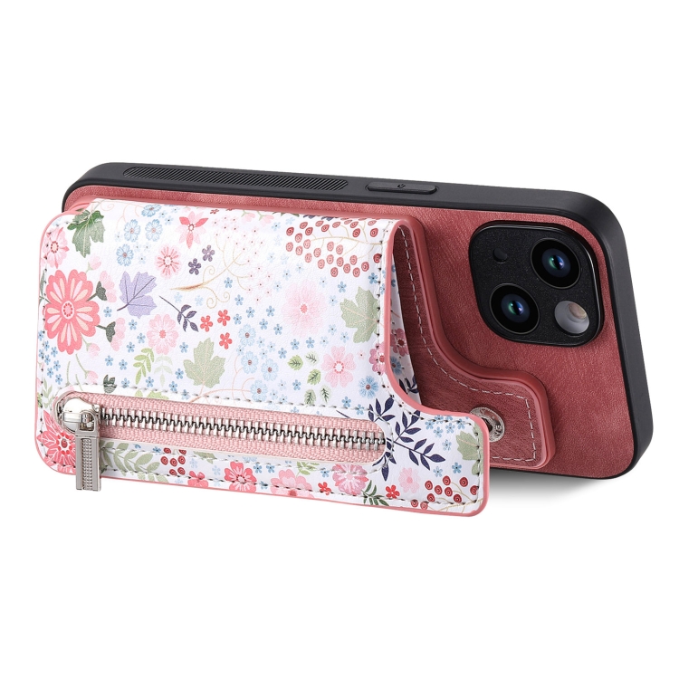 Funda Trasera para iPhone 11 con Billetera y Cremallera Pintada Retro (Rosa)
