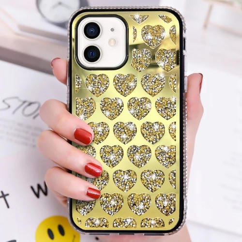 Funda TPU para iPhone 11 Love Hearts Diamond Mirror Protección (Oro)
