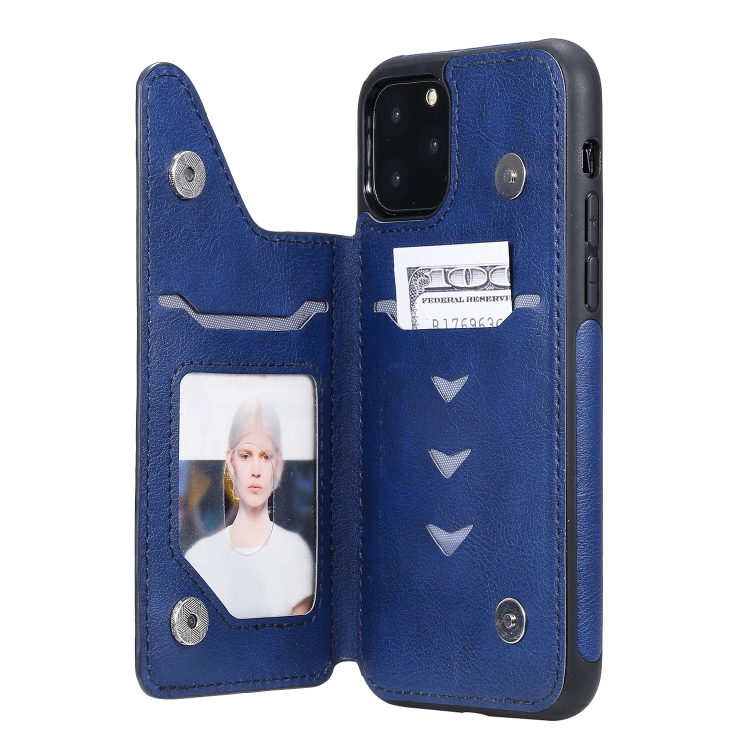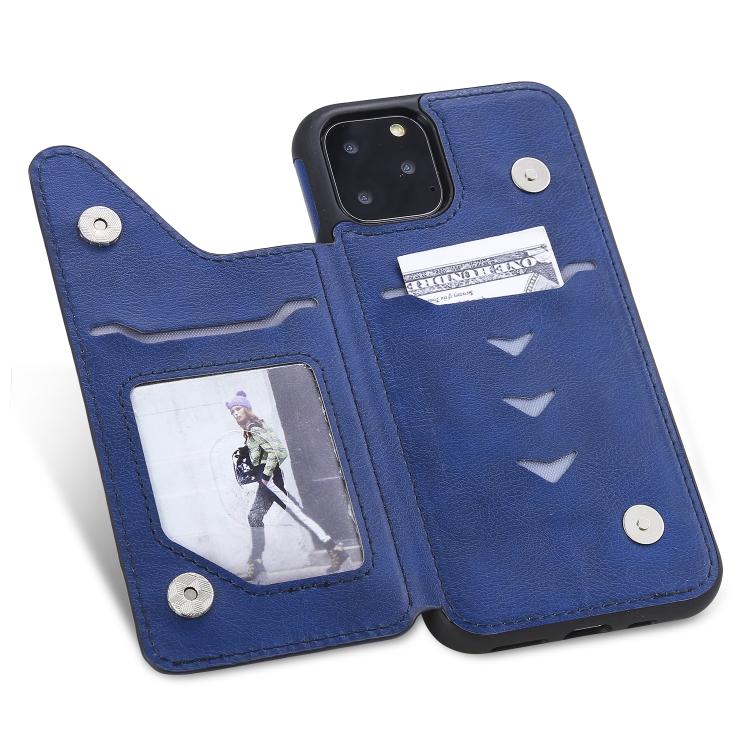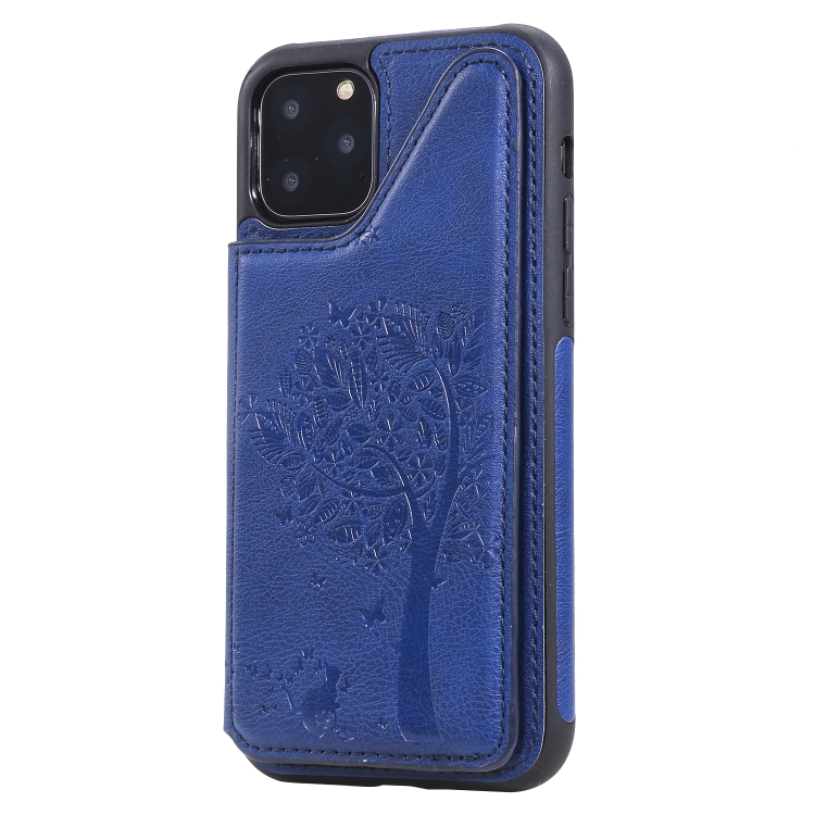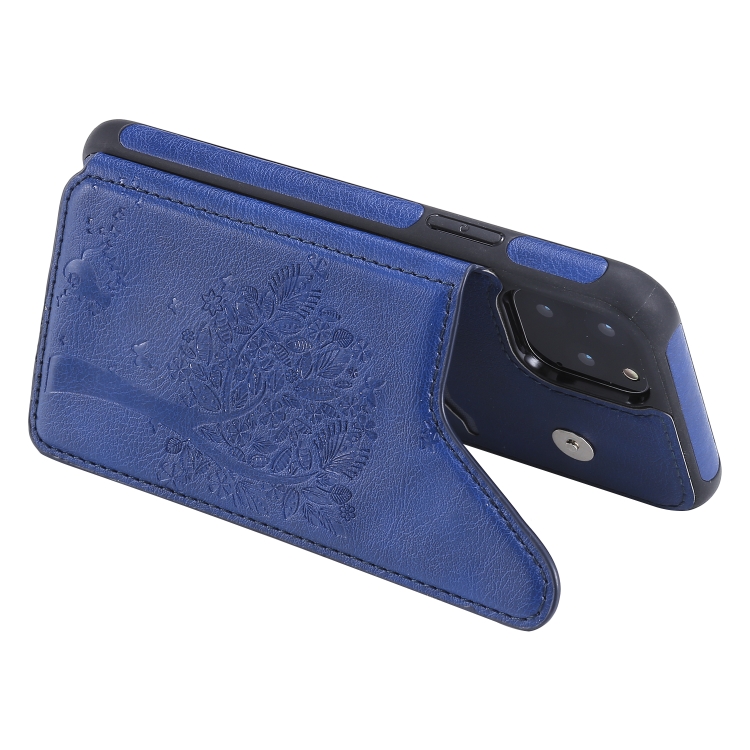 Estuche protector para iPhone 11 Pro Cat Tree con patrón en relieve, ranuras para tarjetas, marco de fotos y soporte (Azul)