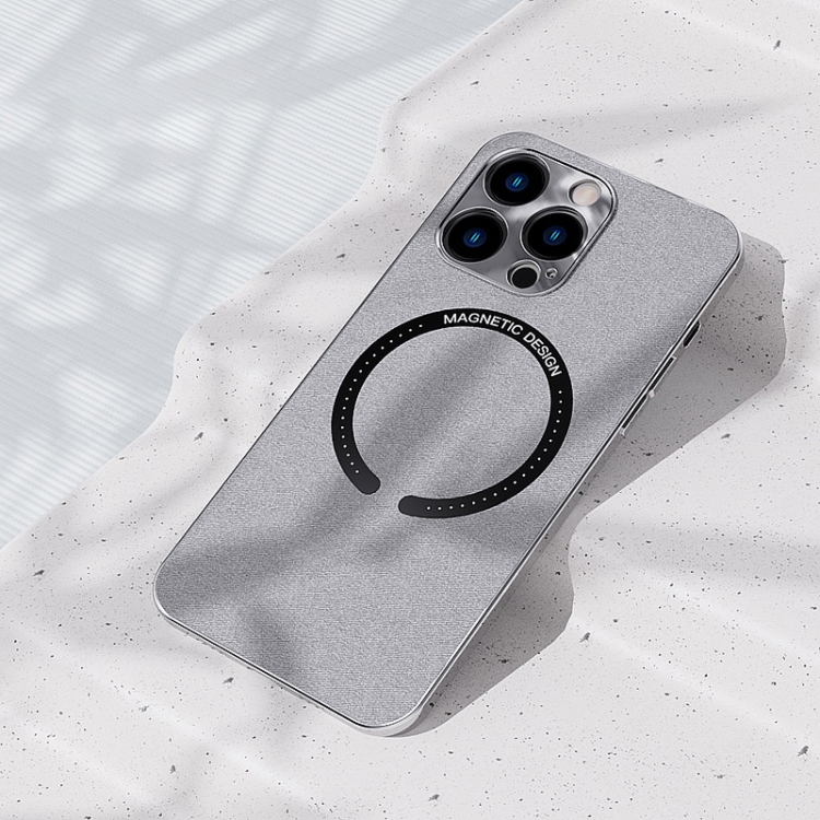 Estuche Magsafe para iPhone 11 Pro de Cuero Electrochapado (Gris Plateado)