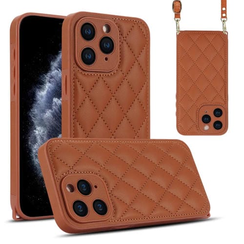 Estuche para Teléfono iPhone 11 Pro Textura Rómbica y Cordón Doble (Marrón)