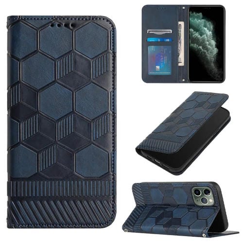 Funda de teléfono para iPhone 11 Pro con tapa de cuero magnético textura de fútbol (Azul Oscuro)