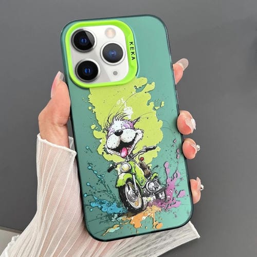 Funda para Teléfono iPhone 11 Pro Imd Animal Graffiti TPU + PC Doble Cara (Perro de Motocicleta)