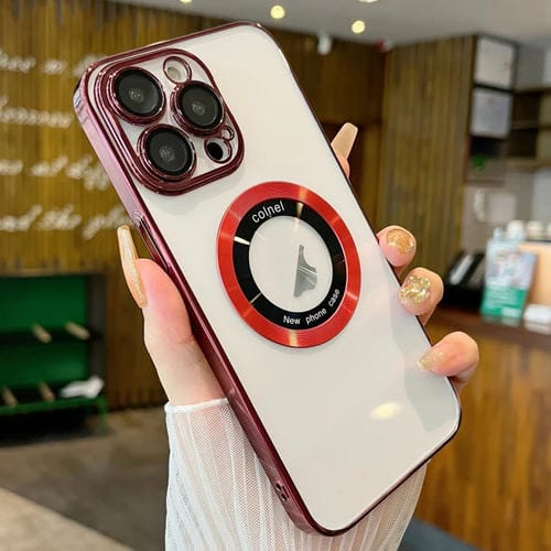 Funda para Teléfono iPhone 11 Pro Magsafe PC Galvanizada Transparente (Rojo Vino)