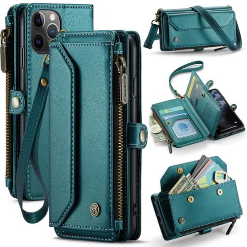 Funda para iPhone 11 Pro Max Caseme C36 Cartera con Ranuras para Tarjetas y Cremallera Antirrobo Rfid (Azul-Verde)