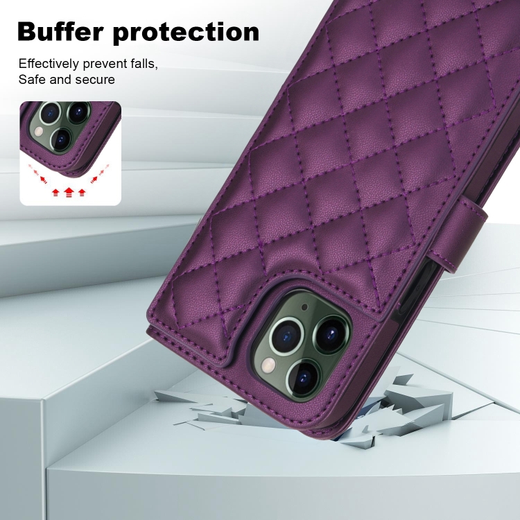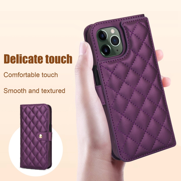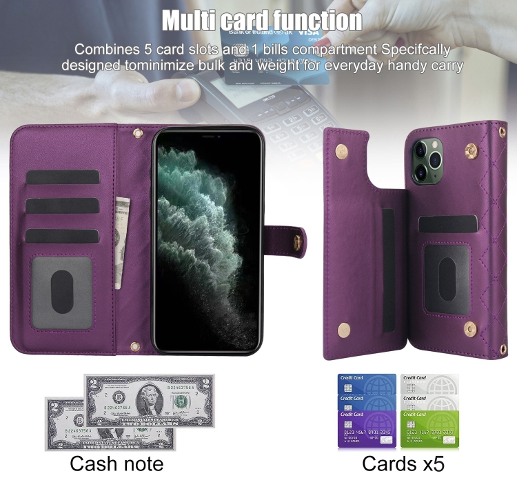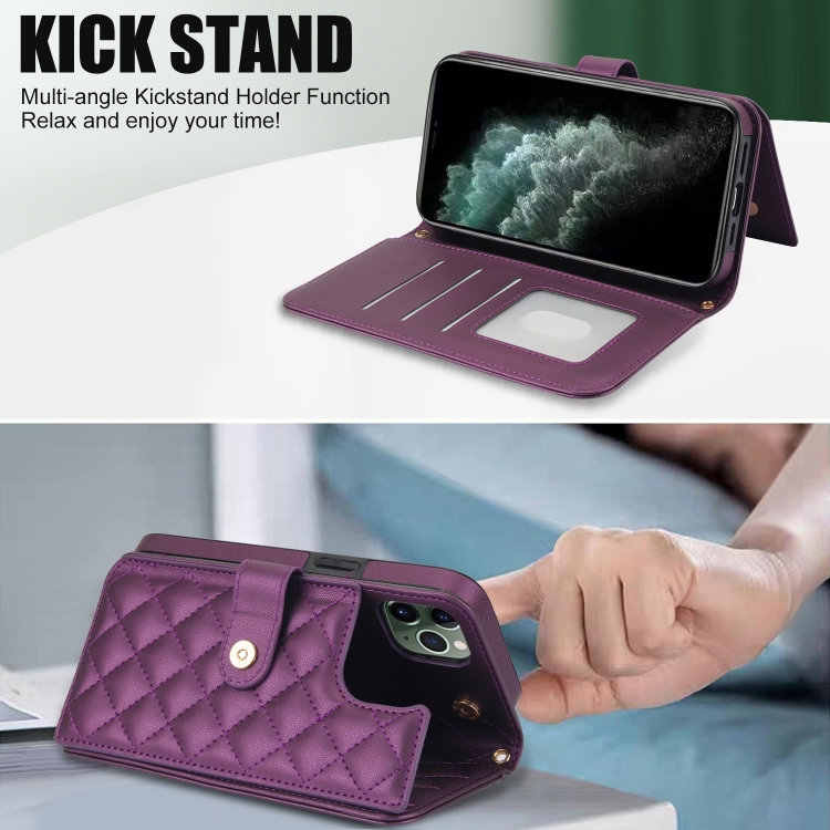 Estuche para Teléfono iPhone 11 Pro Max Cuero Rómbico Multifunción Crossbody (Púrpura Oscuro)