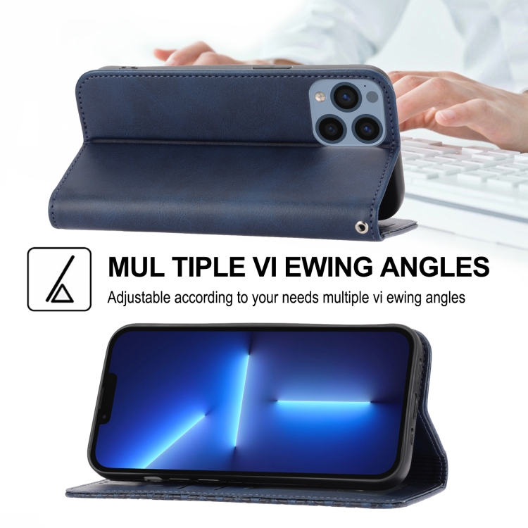 Funda para iPhone 11 Pro Max Cubic Grid Calf Texture Cierre Magnético Cuero (Azul)