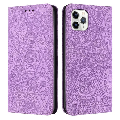 Estuche para teléfono iPhone 11 Pro Max Cuero Adsorción en Relieve Étnico (Púrpura)