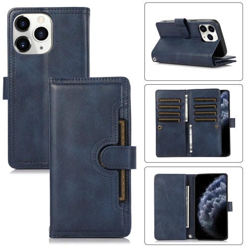 Funda para Teléfono iPhone 11 Pro Max Cuero con Ranura para Tarjeta y Pulsera (Azul)