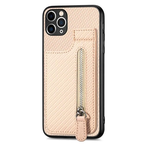 Funda de Teléfono iPhone 11 Pro Max Fibra de Carbono Cremallera Vertical (Caqui)