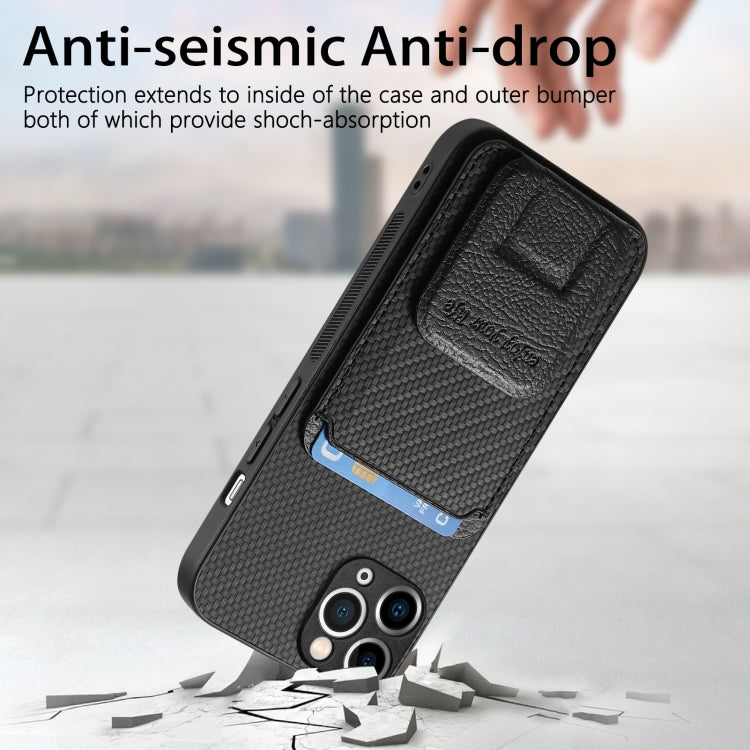 Funda para Teléfono iPhone 11 Pro Max Soporte Plegable Bolsa para Tarjetas Fibra de Carbono (Negro)