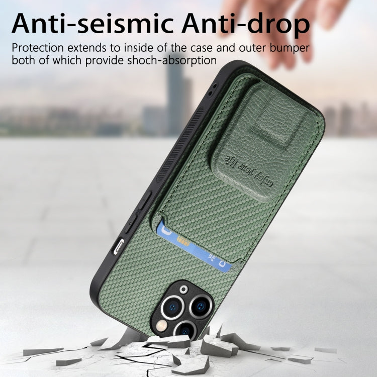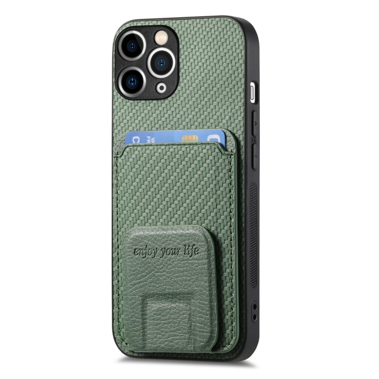 Funda para Teléfono iPhone 11 Pro Max Soporte Plegable Bolsa para Tarjetas Fibra de Carbono (Verde)