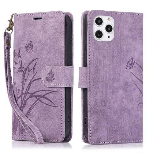 Funda para Teléfono iPhone 11 Pro Max Cuero Relieve Mariposa Orquídea (Púrpura)