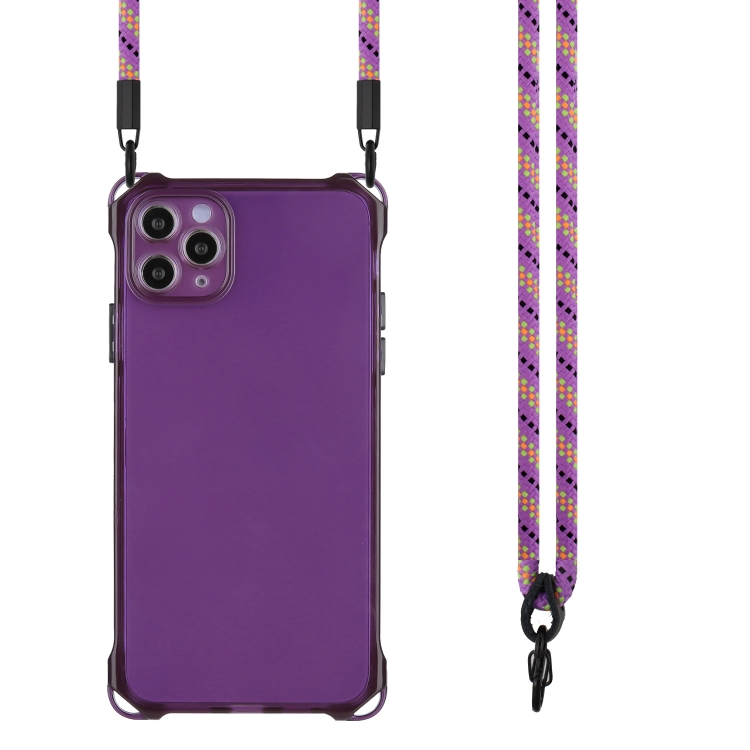 Funda para Teléfono iPhone 11 Pro Max TPU a Prueba de Golpes Cuatro Esquinas con Cordón (Púrpura)