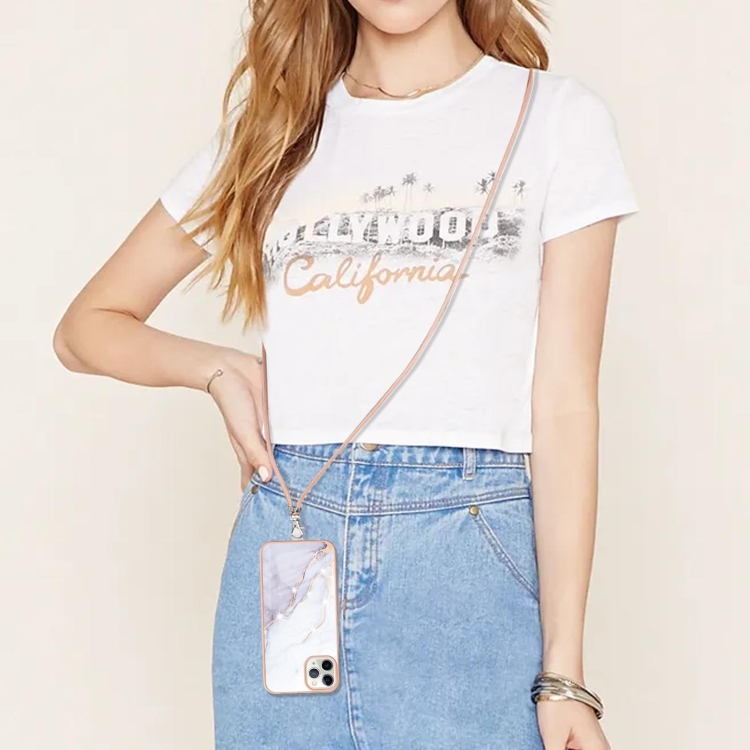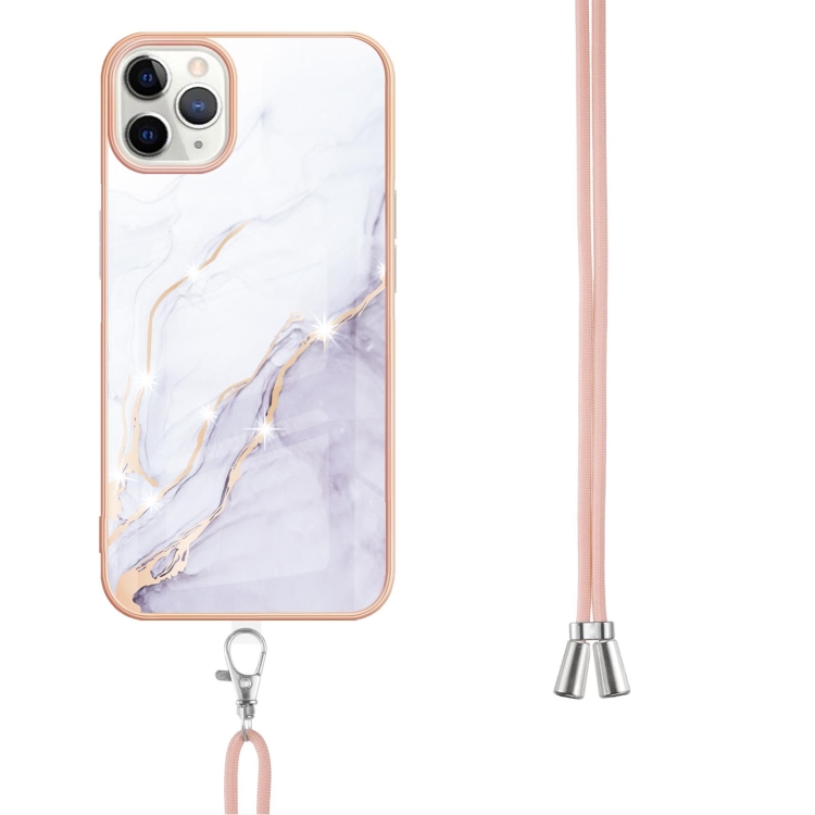 Estuche TPU iPhone 11 Pro Max Galvanoplastia Mármol Imd a Prueba de Golpes con Cordón para El Cuello (Blanco)