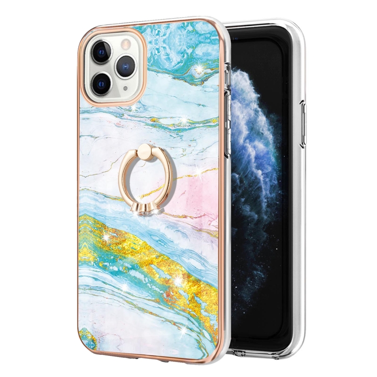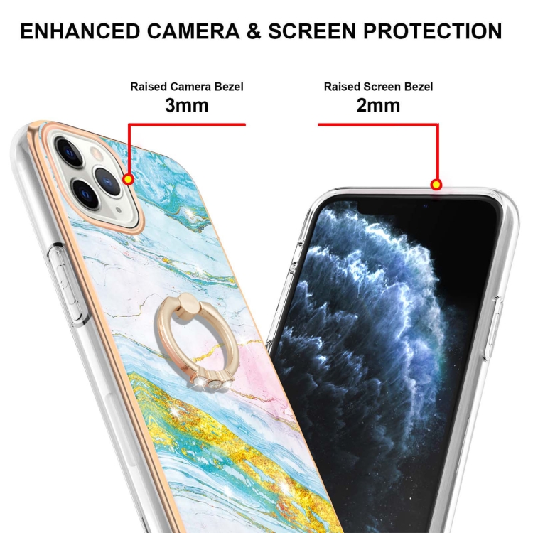 Estuche para iPhone 11 Pro Max TPU Galvanoplastia Patrón Mármol a Prueba de Golpes con Soporte para Anillo (Verde)