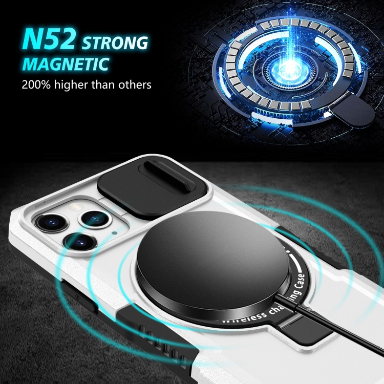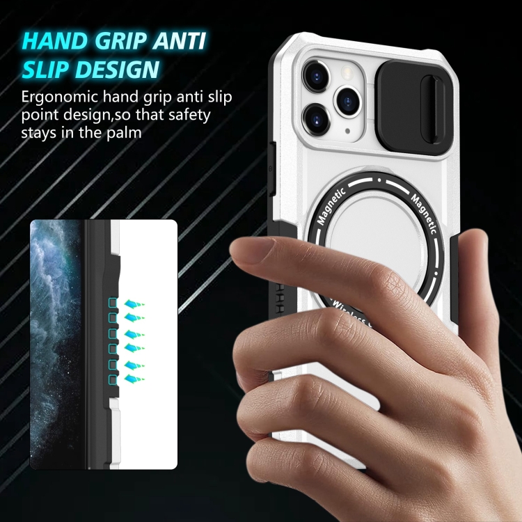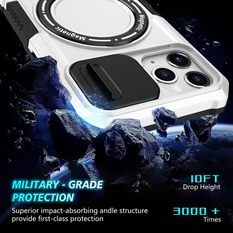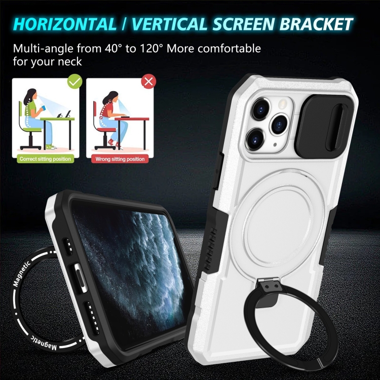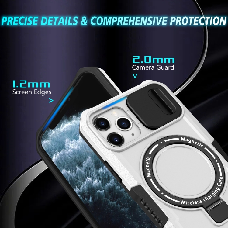 Funda para teléfono iPhone 11 Pro Sliding Camshield Magsafe Holder TPU Hybrid (Negro Blanco)
