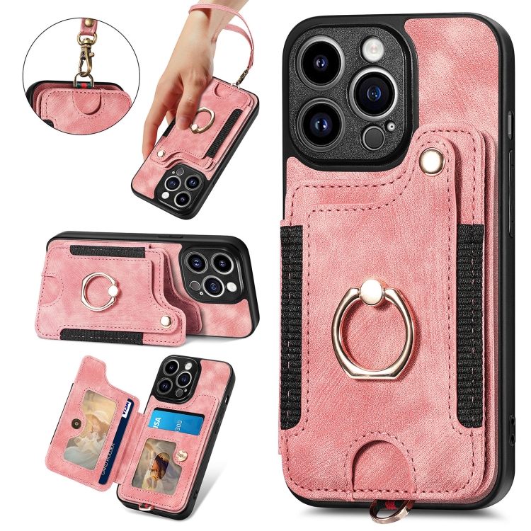 Funda para iPhone 11 Retro Skin-Feel Ring Multi-Card Wallet Phone Case (Rosa)