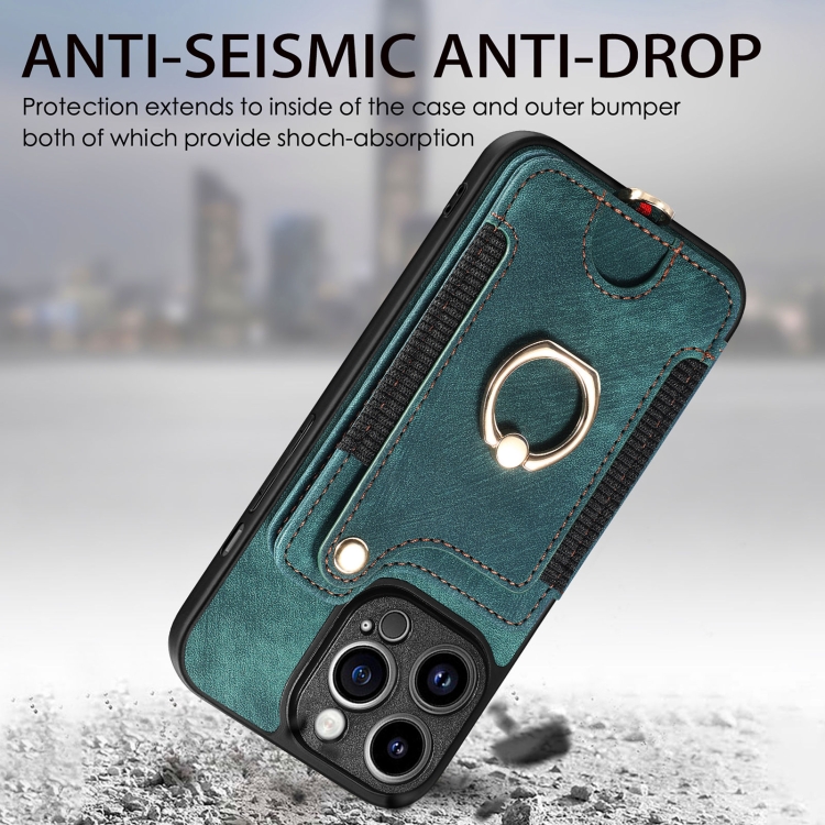 Funda para iPhone 11 Retro Skin-Feel Ring Multi-Card Wallet Phone Case (Verde)